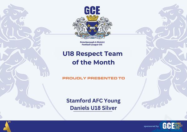 The club is incredibly proud of our Under-18 Silver side earning the PDFL Under-18 Respect Team of the Month award for September.