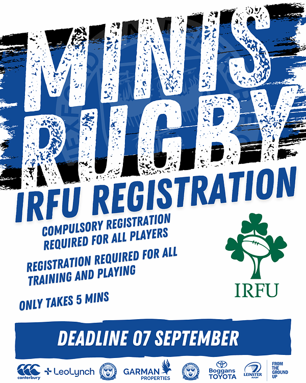 👉 This IRFU registration is compulsory and separate to club membership. 👉 There is no fee for this step. 👉 Registration only takes about 5 minutes to complete. 👉 A list of registered players will be shared with coaches before the season begins. 👉 Unregistered players will not be permitted to play as per guidance.