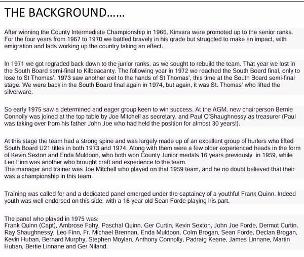 Memory lane time as we look back at an historic year for Kinvara GAA and the winning of the County Junior hurling title.