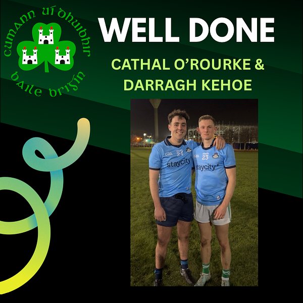Well done to Cathal and Darragh who were in action for Dublin Development Squad on Wednesday night against Wexford💚💚