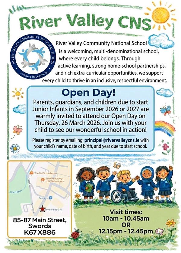Kids starting school in September? Spread the word! Rivervalley CNS is a Brilliant school!! Take a look at their Facebook page if you dont know about it.  Small numbers, one classroom per year school, Lots of PE,  lots of "out of school" adventures, Music ,GAA, after-school activities, community driven projects-  with the small numbers the school gets up to so many amazing programmes and activities πŸ‘ŒπŸ‘Œ the school is associated with St Finians, Sean our GPO goes there for GAA, and the students who will represent in the Fingal Leagues are St Finians Players πŸ‡²πŸ‡ΉπŸπŸ‘