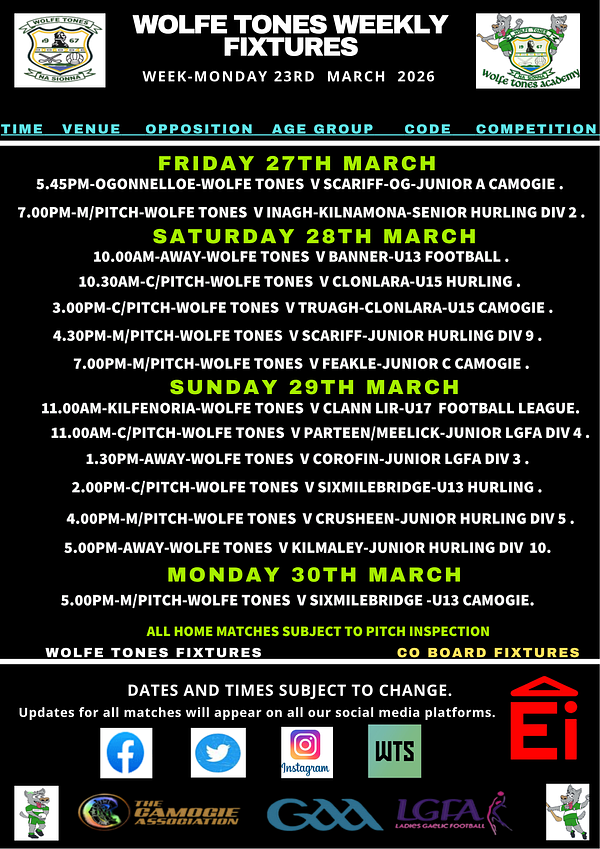 Fixtures-Week 23rd March
