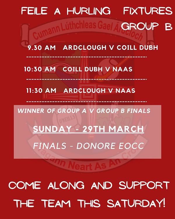Our U15 team is playing in the Féile A Hurling this Saturday at home.