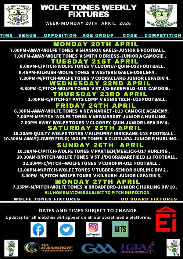 Fixtures-Week 6th of April UpdateAll Sunday ...
